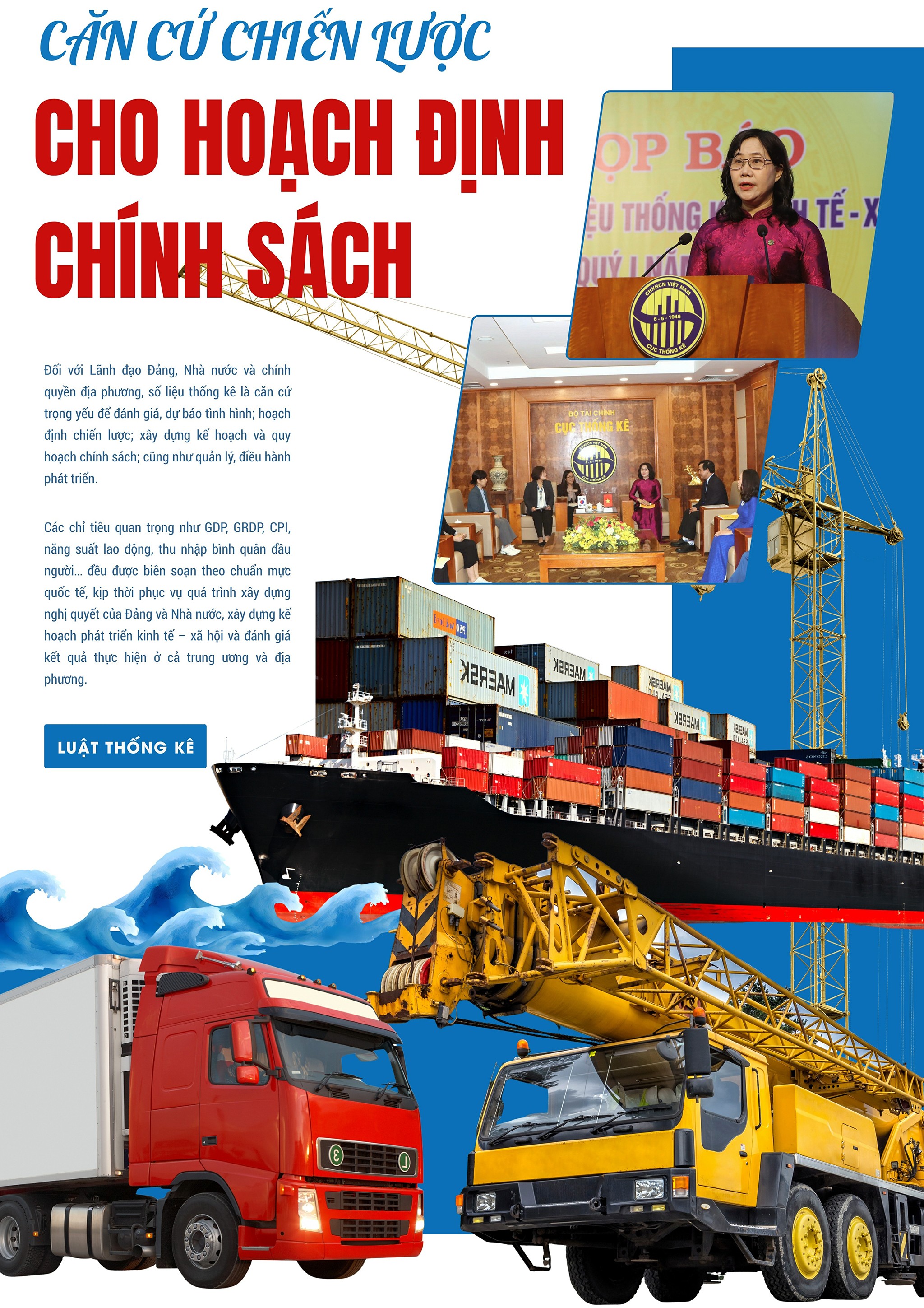 Đối với Lãnh đạo Đảng, Nhà nước và chính quyền địa phương, số liệu thống kê trở thành căn cứ trọng yếu trong đánh giá, dự báo tình hình, hoạch định chiến lược và xây dựng kế hoạch, quy hoạch, chính sách phát triển. Các chỉ tiêu then chốt như GDP, GRDP, CPI, năng suất lao động hay thu nhập bình quân đầu người được biên soạn theo chuẩn mực quốc tế, bảo đảm tính so sánh, khách quan và kịp thời phục vụ cho quá trình xây dựng nghị quyết, chiến lược phát triển kinh tế - xã hội và đánh giá kết quả thực hiện ở cả trung ương lẫn địa phương.