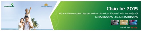 (Taichinh) - Mở thẻ Vietcombank Vietnam Airlines American Express và cùng Vietcombank chào đón mùa hè tuyệt vời 2015 với những ưu đãi đặc biệt dành riêng cho chủ thẻ phát hành mới như sau