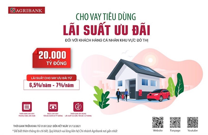Nhận thấy những khó khăn mà người dân, đặc biệt là người dân ở khu vực thành thị gặp phải do đại dịch COVID-19 gây ra, nhằm hỗ trợ người dân giải quyết những vấn đề khó khăn trước mắt, đáp ứng các nhu cầu cần thiết, ổn định và vực dậy cuộc sống trở lại, đồng thời hạn chế nạn “tín dụng đen”, từ ngày 25/6/2021, Agribank dành 20.000 tỷ đồng triển khai chương trình cho vay tiêu dùng với lãi suất ưu đãi đối với khách hàng cá nhân khu vực đô thị bao gồm: thị trấn, thị xã, thành phố trực thuộc tỉnh và thành phố trực thuộc trung ương.