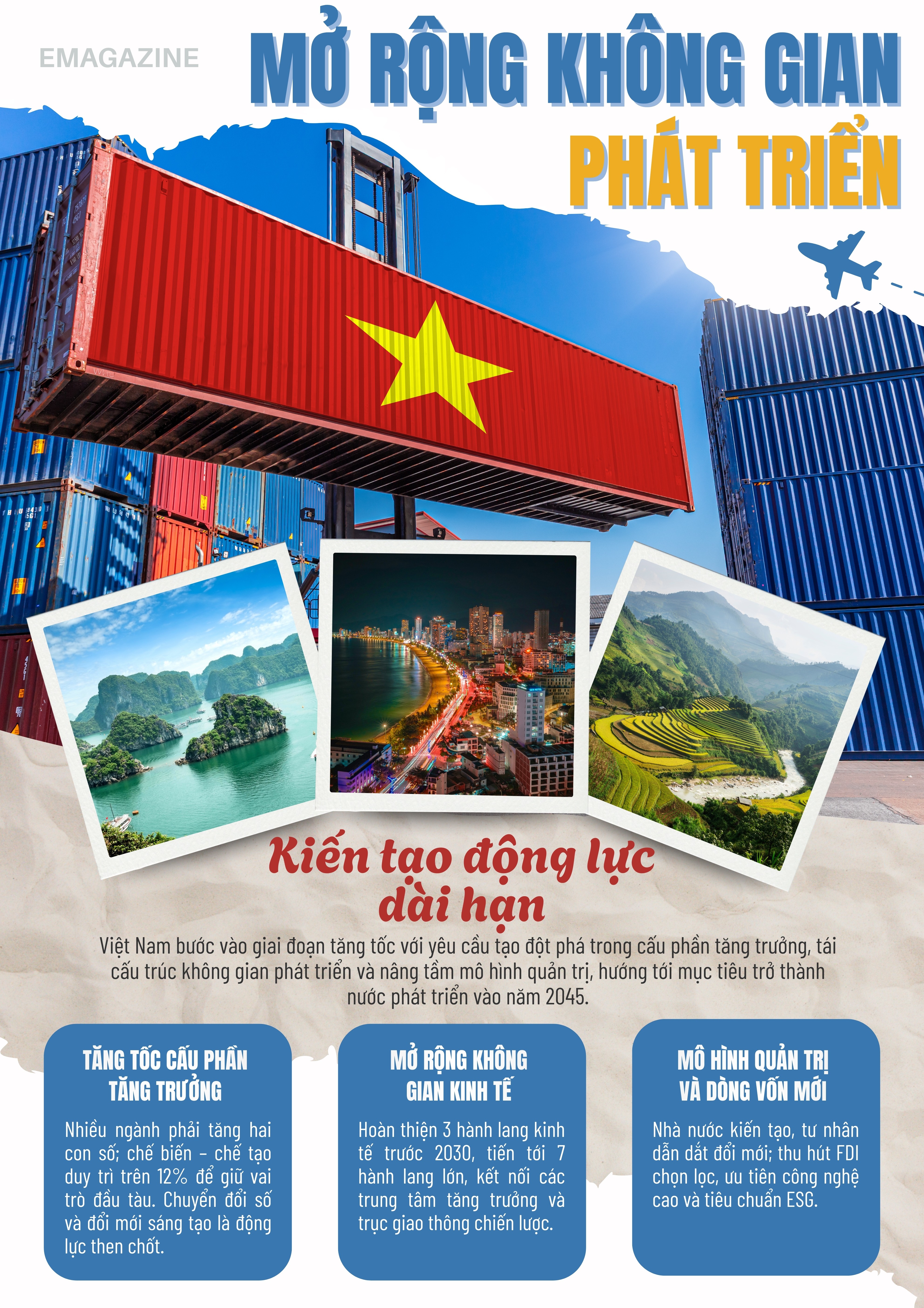 Những điều chỉnh này đòi hỏi một mô hình quản trị mới, trong đó Nhà nước đóng vai trò kiến tạo, tập trung hoàn thiện hạ tầng chiến lược, còn khu vực tư nhân trở thành động lực đổi mới. Thu hút FDI có chọn lọc hướng tới công nghệ cao và tiêu chuẩn ESG được nhấn mạnh là định hướng dài hạn. Với khát vọng phục hồi và tăng tốc, Việt Nam kỳ vọng giai đoạn 2026-2030 sẽ tạo đột phá để đạt mục tiêu trở thành nước phát triển vào năm 2045.