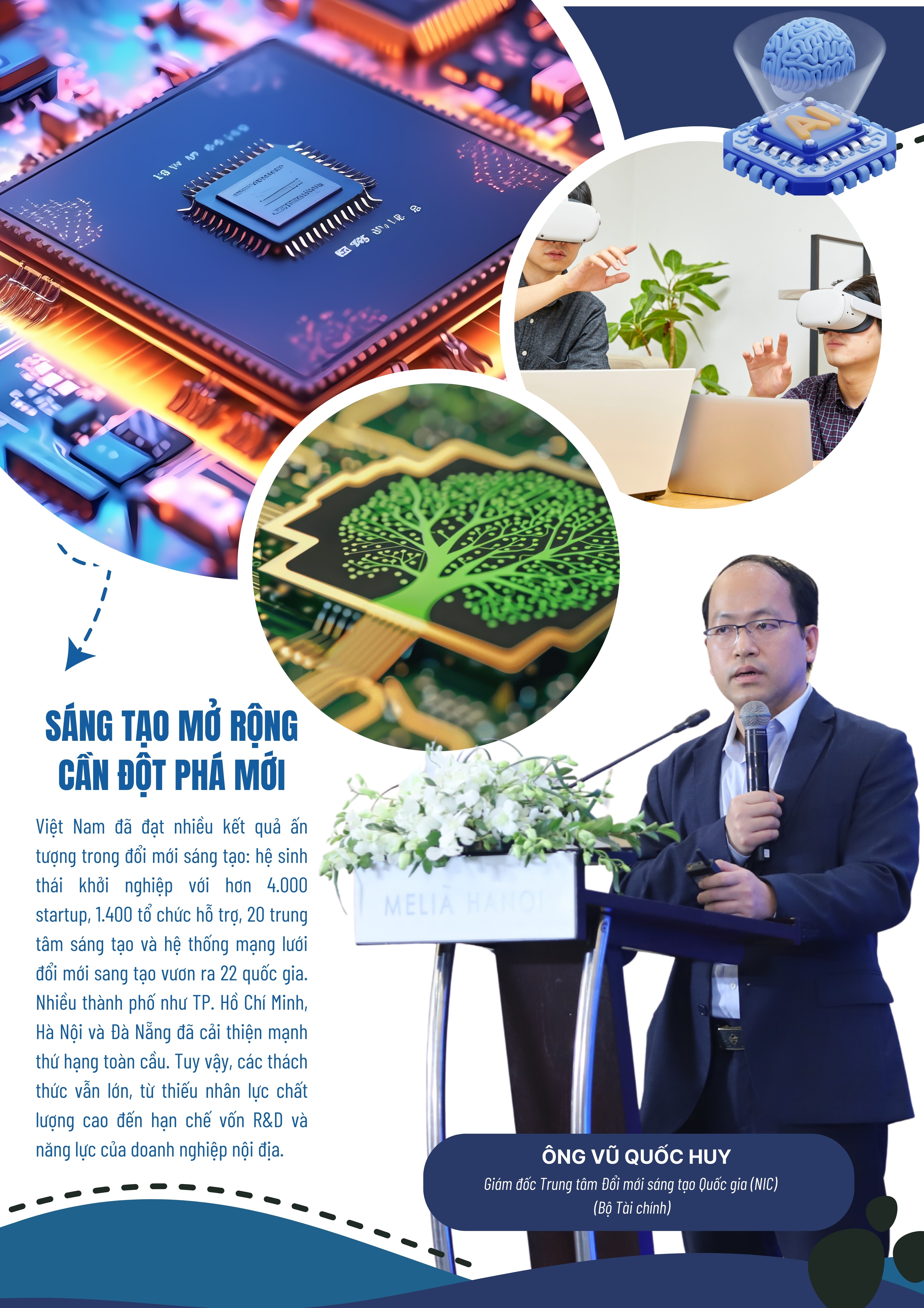 Việt Nam đã đạt nhiều kết quả ấn tượng trong đổi mới sáng tạo: hệ sinh thái khởi nghiệp với hơn 4.000 startup, 1.400 tổ chức hỗ trợ, 20 trung tâm sáng tạo và hệ thống mạng lưới đổi mới sang tạo vươn ra 22 quốc gia. Nhiều thành phố như TP. Hồ Chí Minh, Hà Nội và Đà Nẵng đã cải thiện mạnh thứ hạng toàn cầu. Tuy vậy, các thách thức vẫn lớn, từ thiếu nhân lực chất lượng cao đến hạn chế vốn R&D và năng lực của doanh nghiệp nội địa.