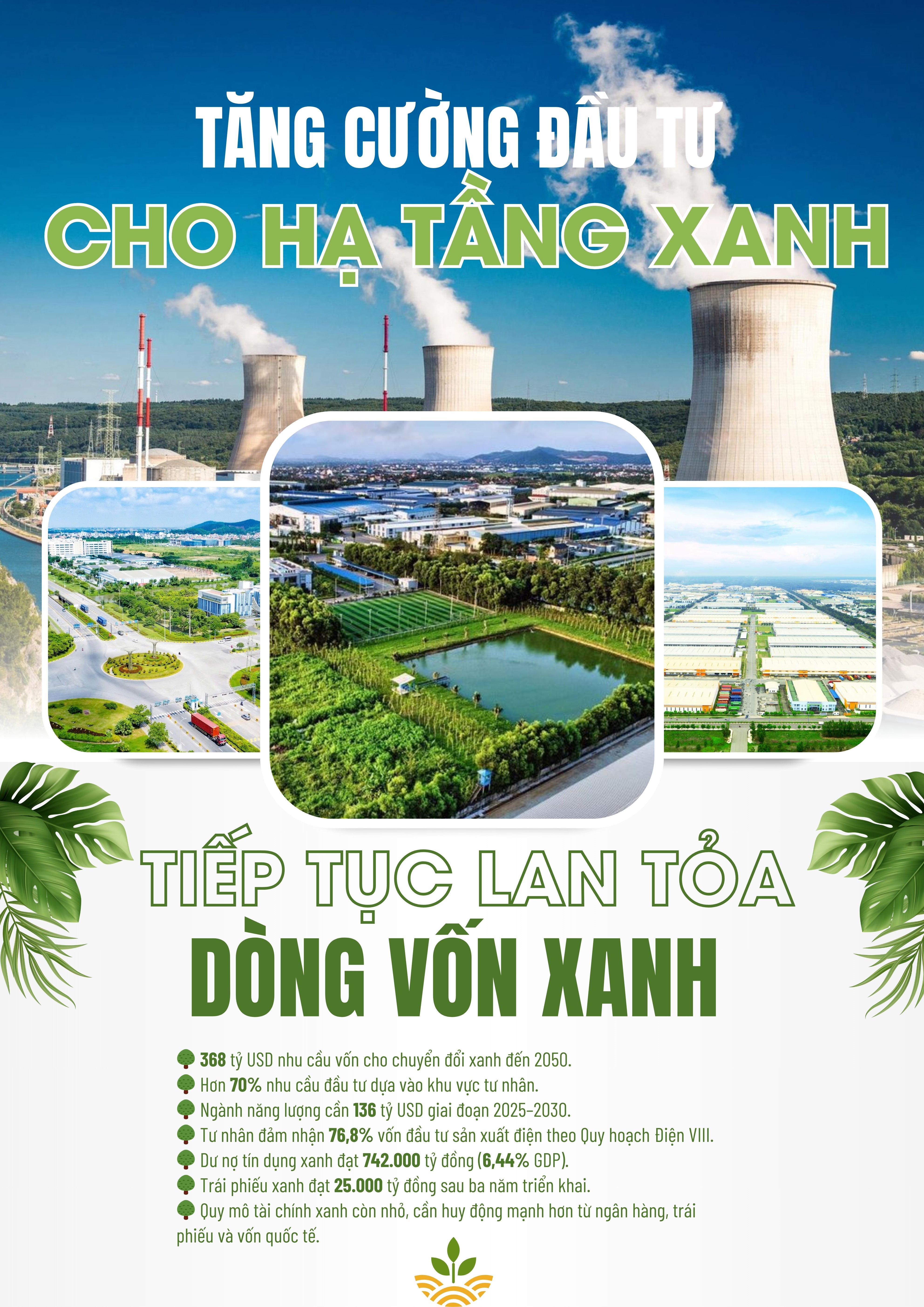 Thực tế cho thấy nhu cầu vốn cho chuyển đổi xanh của Việt Nam rất lớn, ước tính cần 368 tỷ USD đến năm 2050 cho các lĩnh vực công nghiệp, vận tải, nông nghiệp và năng lượng. Trong đó, khu vực tư nhân đóng vai trò chủ lực với hơn 70% nhu cầu đầu tư. Riêng ngành năng lượng, trụ cột của chuyển dịch xanh đòi hỏi dòng vốn khổng lồ cho điện tái tạo, lưới điện, lưu trữ và các công nghệ mới như hydrogen hay thu hồi carbon.