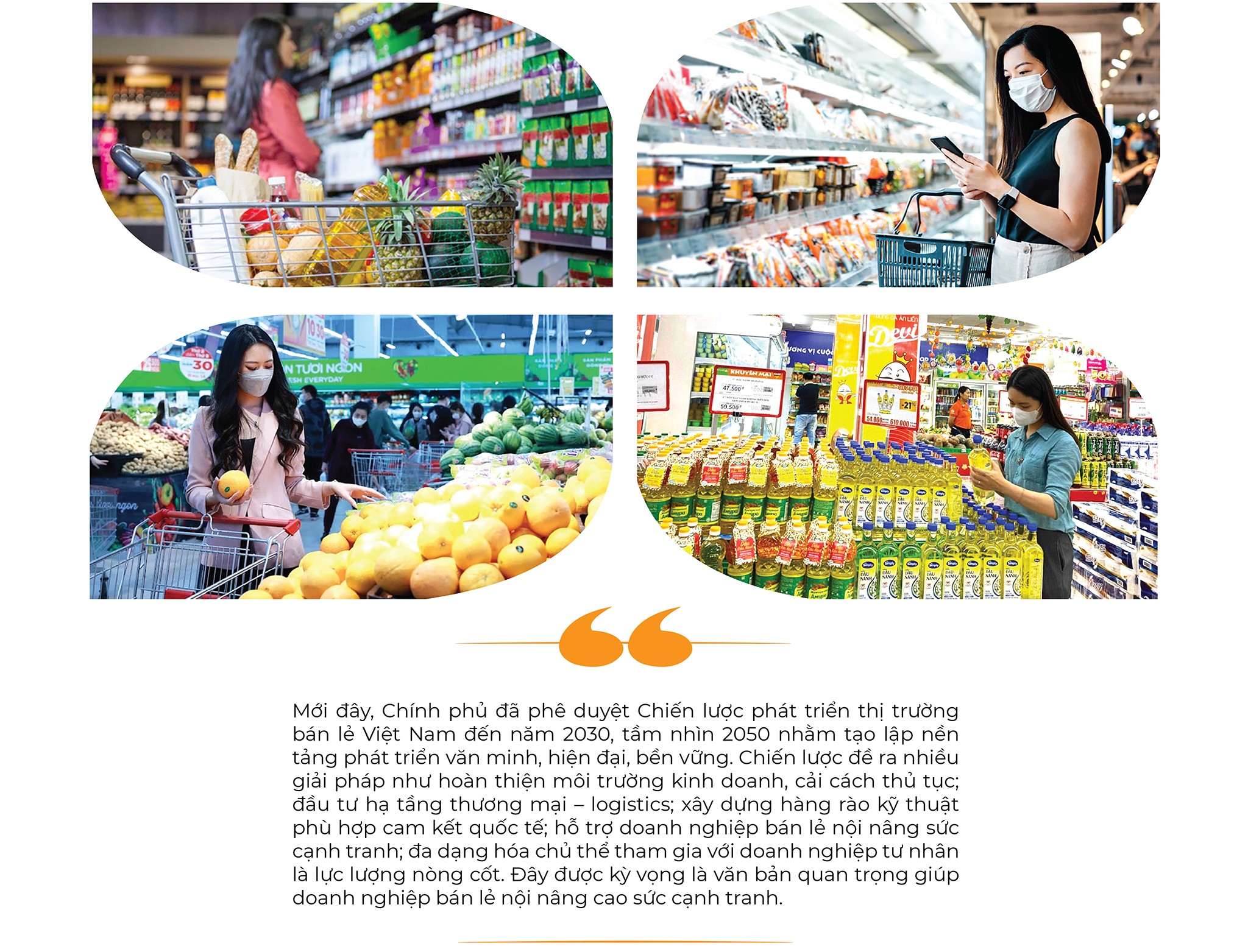 Cùng với đó, hình thành các chuỗi liên kết để kết nối sản xuất với phân phối hàng hóa, tập trung trước hết vào các chuỗi cung ứng hàng nông sản thực phẩm thiết yếu nhằm đảm bảo ổn định cung - cầu, quản lý có hiệu quả chất lượng và an toàn thực phẩm lưu thông trên thị trường; liên kết chặt chẽ giữa doanh nghiệp bán lẻ với các nhà sản xuất trong việc tạo nguồn hàng ổn định với giá cả cạnh tranh, bảo đảm chất lượng, đáp ứng nhu cầu đa dạng của người tiêu dùng. Tập trung phát triển mạnh các loại hình kinh doanh thương mại hiện đại như thương mại điện tử, sàn giao dịch điện tử dựa trên nền tảng số hóa đáp ứng yêu cầu và xu hướng mua sắm của người tiêu dùng trong tương lai.
