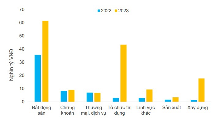 Biểu đồ 2: Giá trị trái phiếu doanh nghiệp đáo hạn trong năm 2022 – 2023 theo nhóm ngành