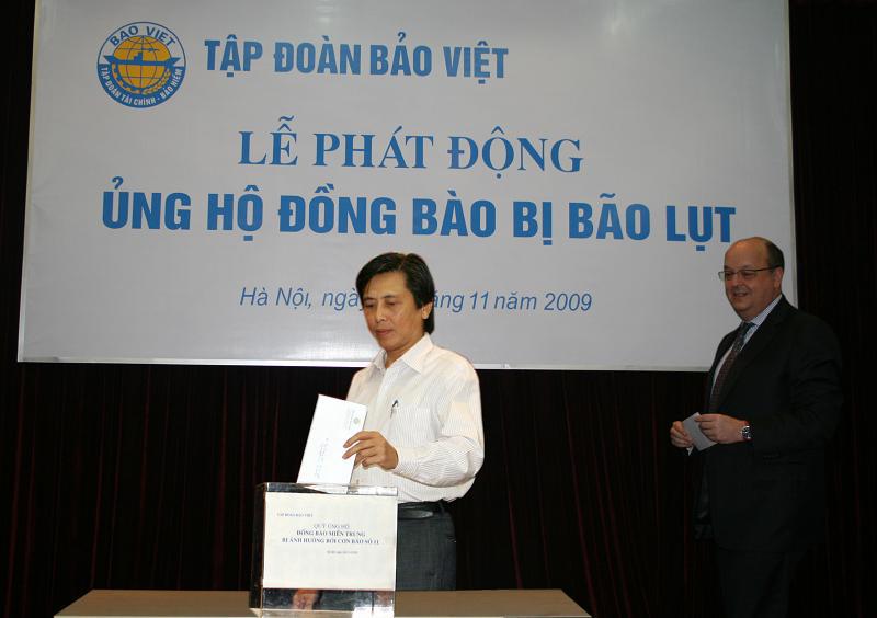 TCTC Online - Ngày 6/11/2009, tại Trụ sở Tập đoàn Bảo Việt số 8 Lê Thái Tổ, Hoàn Kiếm, Hà Nội, Tập đoàn Bảo Việt đã tổ chức lễ phát động cán bộ ủng hộ đồng bào Miền Trung, Tây Nguyên bị thiệt hại do cơn bão số 11. Buổi lễ đã nhận được sự quan tâm ủng hộ và tham gia nhiệt tình của các đồng chí Lãnh đạo Đảng ủy, Lãnh đạo Tập đoàn Bảo Việt, đại diện Lãnh đạo và Công đoàn các đơn vị thành viên cùng đông đảo cán bộ, đoàn viên đang công tác tại các đơn vị của Bảo Việt trên địa bàn Hà Nội. Các chuyên gia HSBC đang công tác tại Bảo Việt cũng tham gia tích cực trong hoạt động này. Tại buổi lễ, Chủ tịch Công đoàn Tập đoàn Bảo Việt báo cáo sơ bộ tình hình thiệt hại do mưa lũ gây ra tại các tỉnh Nam Trung Bộ và Tây Nguyên, đồng thời kêu gọi toàn thể cán bộ, đoàn viên tích cực tham gia ủng hộ cho đồng bào bị thiệt hại do cơn bão số 11 gây ra.
