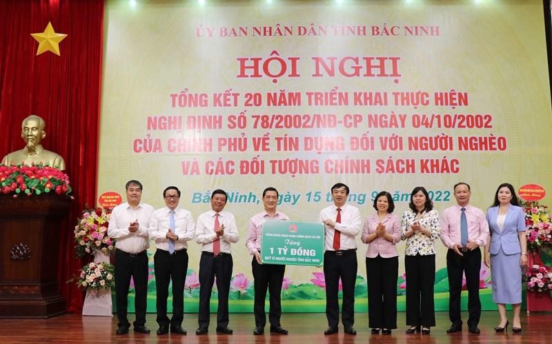 Nhân dịp này, Ngân hàng Chính sách xã hội Việt Nam tặng 1 tỷ đồng cho Quỹ người nghèo tỉnh Bắc Ninh. Nhiều tập thể, cá nhân có thành tích xuất sắc trong 20 năm thực hiện Nghị định số 78/2002/NĐ-CP được tuyên dương, khen thưởng.