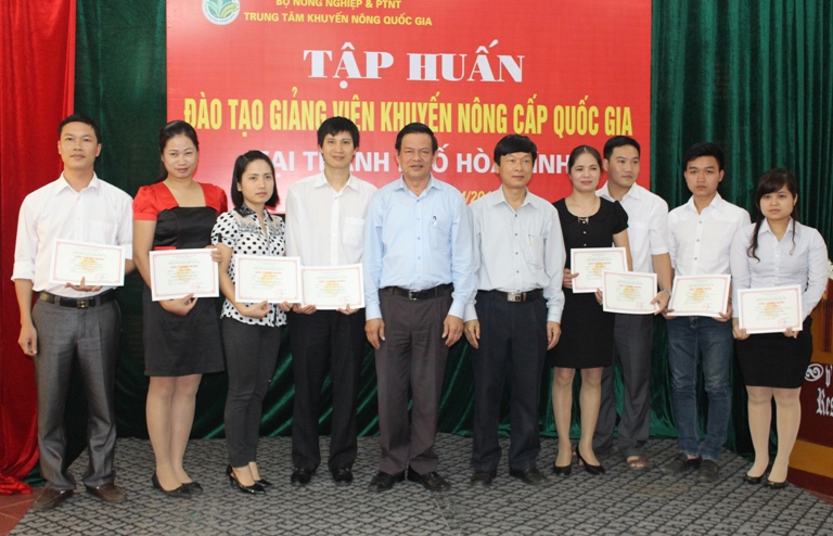 (Tài chính) Từ ngày 23/3 - 2/4/2015 Trung tâm Khuyến nông Quốc gia (KNQG) tổ chức Khóa đào tạo giảng viên khuyến nông cấp Quốc gia, tại thành phố Hòa Bình. Khóa học có sự tham gia 61 cán bộ khuyến nông đến từ 26 tỉnh thành miền Bắc và Thanh hóa trở ra.