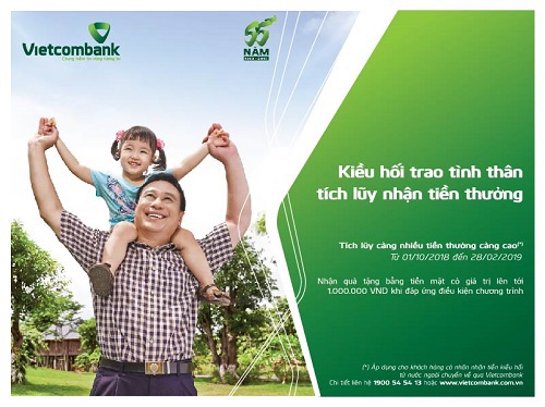 Từ ngày 01/10/218, Vietcombank chính thức triển khai chương trình khuyến mại “Kiều hối trao tình thân, tích lũy nhận tiền thưởng” năm 2018 dành cho các khách hàng cá nhân nhận tiền chuyển từ nước ngoài tại Vietcombank. Chương trình kéo dài đến hết ngày 28/02/2019.
